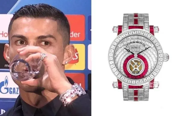 而C罗本人的珠宝则要少很多,不过他却比较偏爱名表。根据媒体统计,近些年他在公共场合显露出的手表总价值,已经超过了200万英镑。其中最贵的是一块法穆兰的钻石陀飞轮手表,价值约120万英镑,折合人民币1000万元。而他在不久前亮相迪拜环球奖颁奖现场时,又秀出了一块镶嵌着18克拉钻石的白金劳力士手表,这也是劳力士迄今为止售价最贵的一块手表,价值38万英镑。